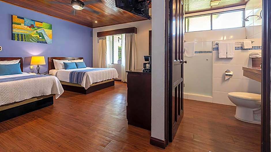 This very spacious air-conditioned room has 2 queen-size beds and offers free Wi-Fi, flat-screen cable TV, a ceiling fan and a direct-dial telephone, mini bar and coffee maker. The marble private bathroom includes a hairdryer. Rooms have views of the rainforest or the San Carlos River. Please note that the rate is based on 2 guests. Maximum occupancy is 5 guests (see Hotel Policies).